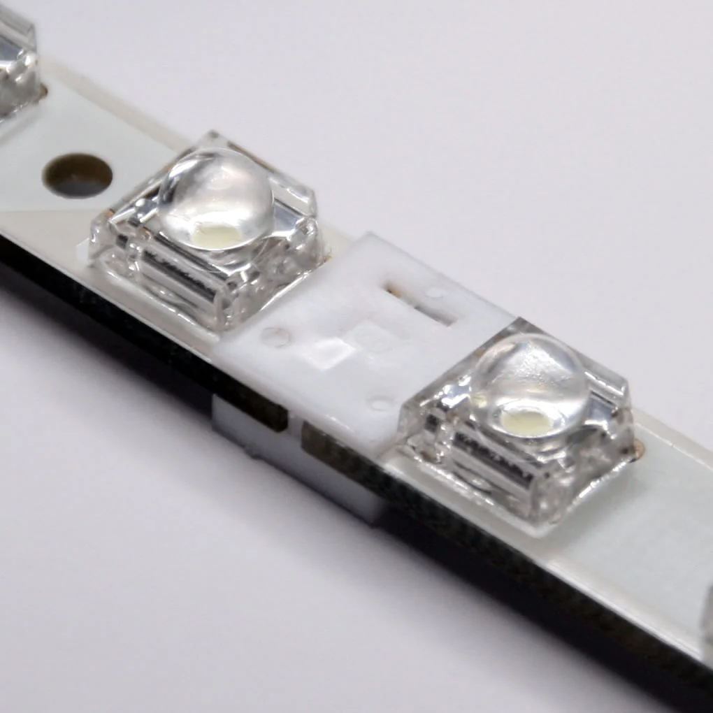 Der Verbinder gestaltet den Anschluss zwischen zwei LED Leisten oder Matrixen einfach und sicher. Gleichzeitig ermöglicht er gleichmäßige Abstände zwischen den LEDs.